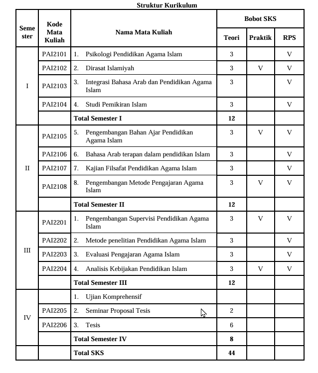 - Menyiapkan tenaga ahli magister Pendidikan Agama Islam yang memiliki wawasan luas dan siap melanjutkan studi di jenjang lebih tinggi.